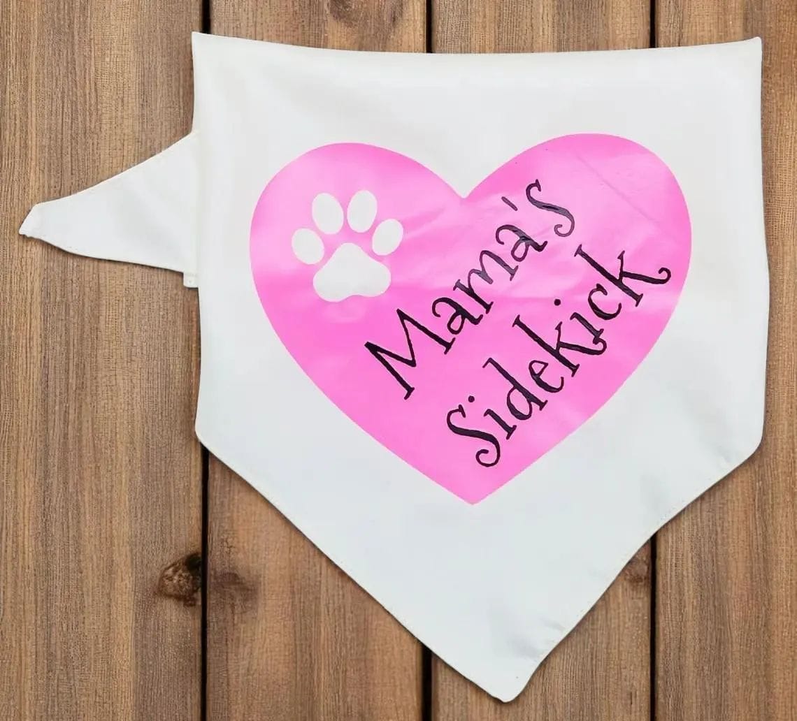 Medium Mama's Sidekick Heart Dog Bandana Scarf - Cute Dog Scarf