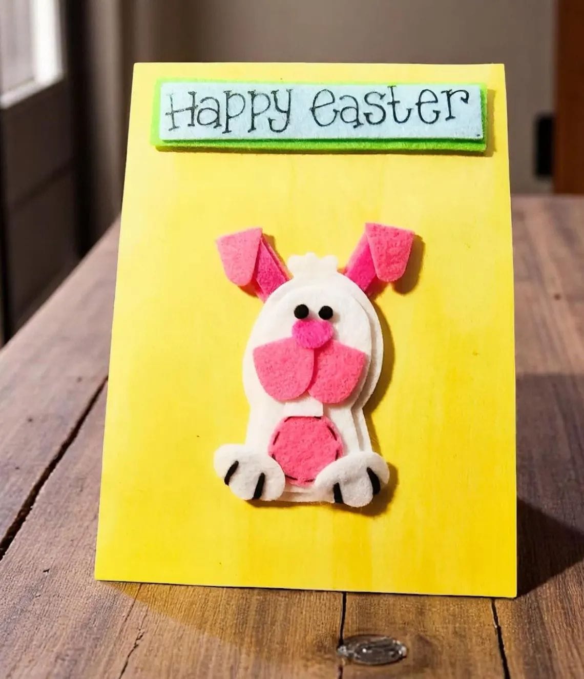 Handmade Felt Bunny Happy Easter Card - Handmade Easter Greeting Card