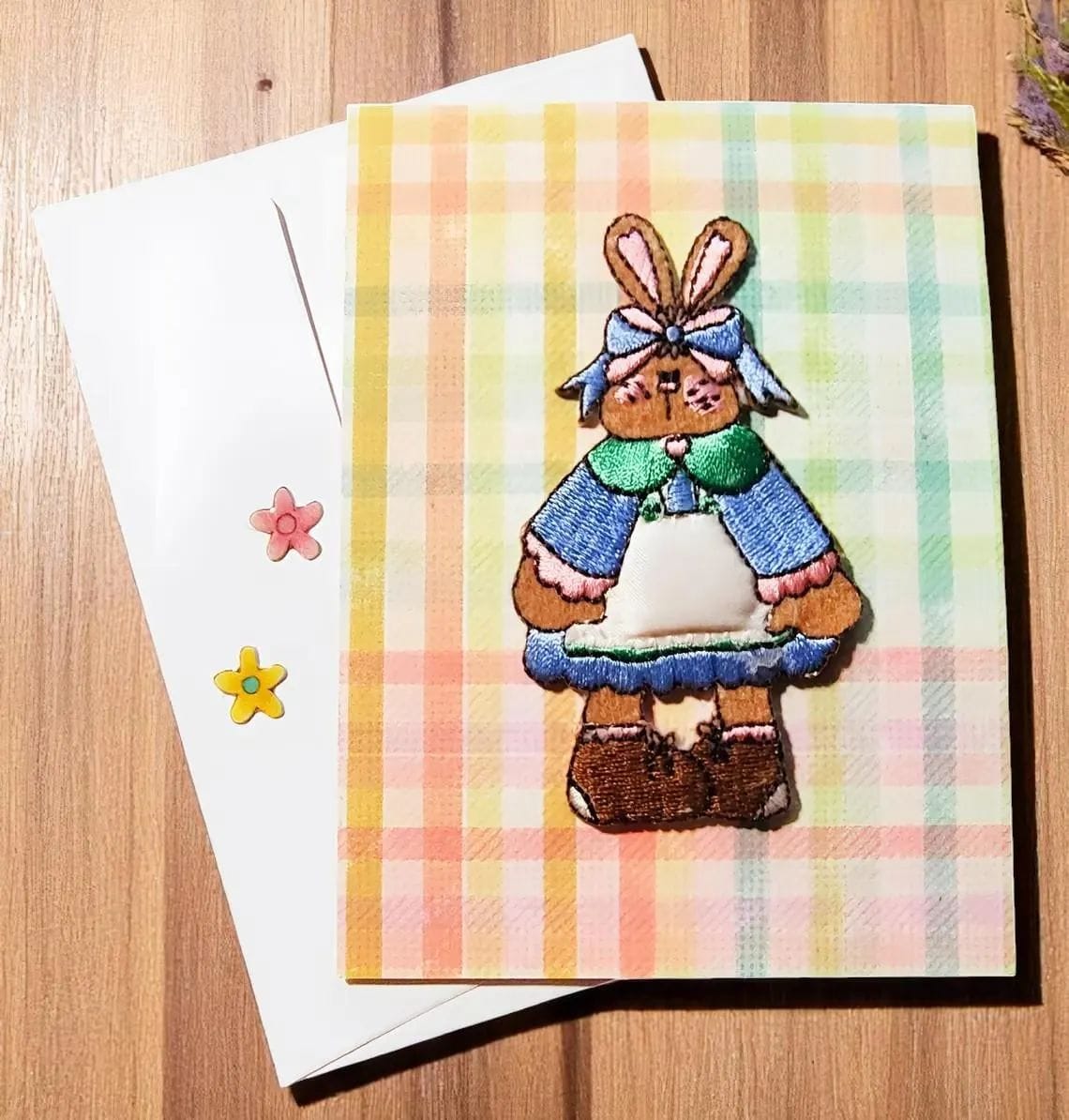 Handmade Bunny Girl Easter Card - Handmade Spring Card