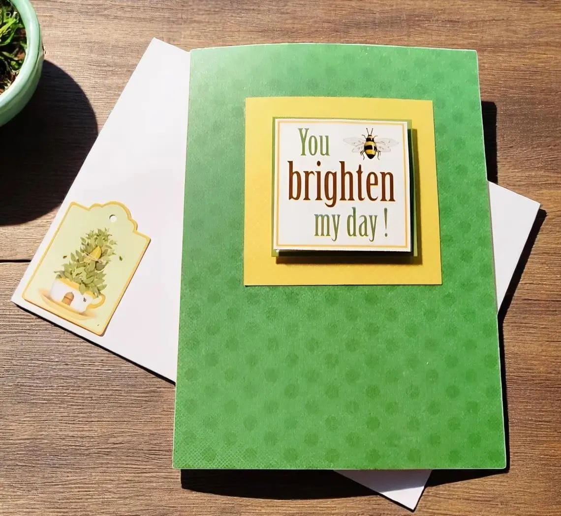You Brighten My Day Bee Spring Card - Handmade Spring Card, Spring Greeting